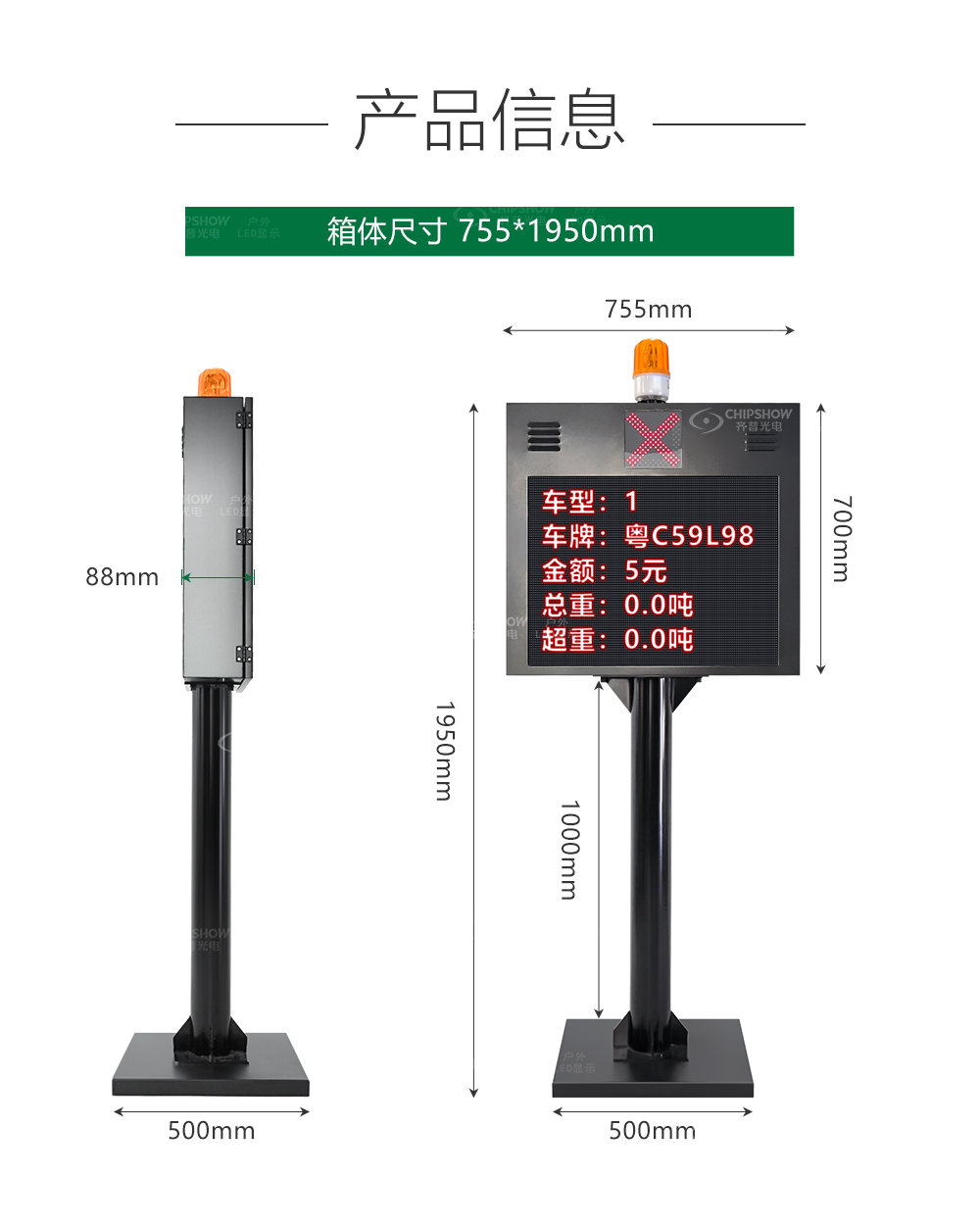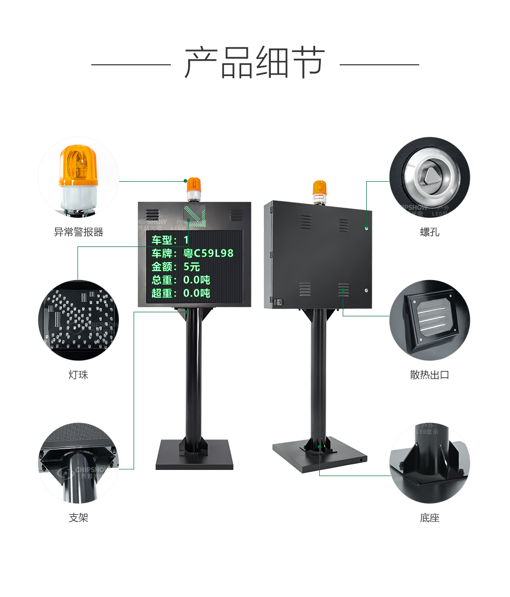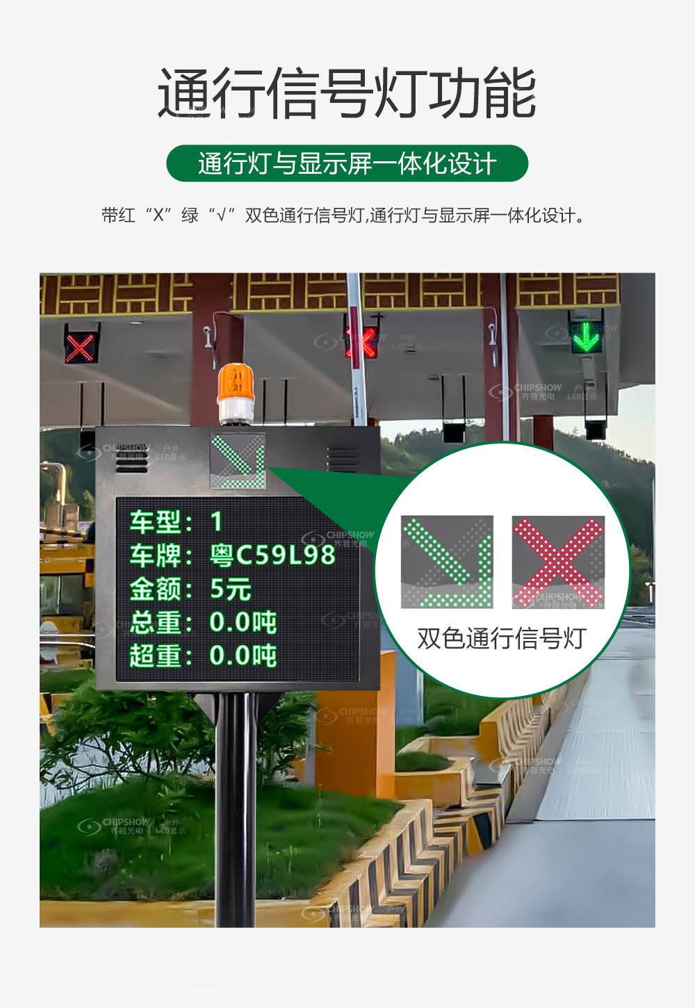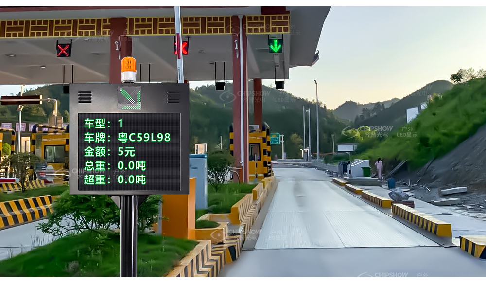 费额信息显示器主要安装在人工收费站,ETC车道用以显示汽车类型、收