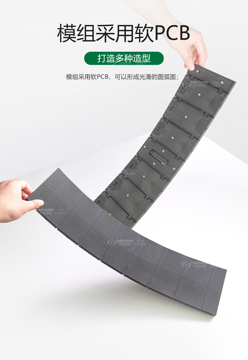 4 模组采用软PCB,可以形成光滑的圆弧面;