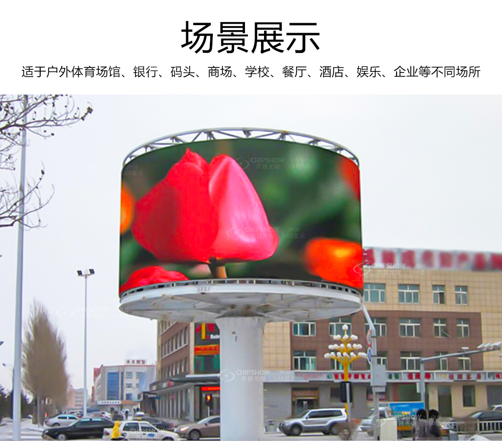 4.最小半径:此模组能拼最小半径为382mm外弧形屏,也可以做最小直径为764mm大小的圆柱屏。